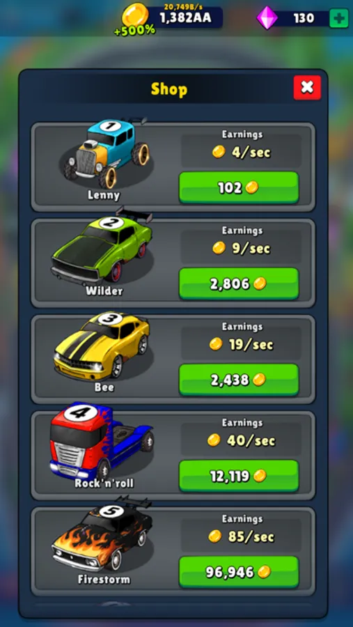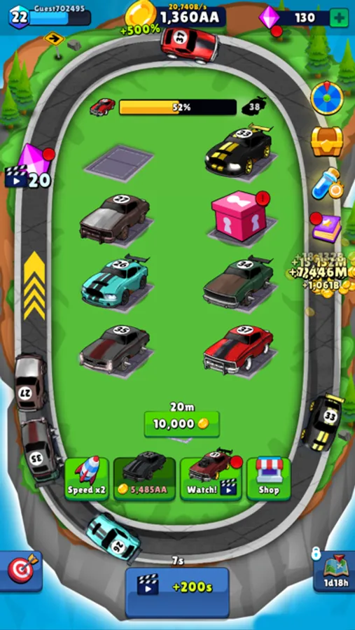 The gameplay is very intuitive: merge the same cars together into advanced one and earn money for each finished circuit. Improve your cars, gain new slots and expand your collection to get more money.