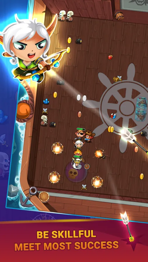 Be a conscious warrior to guess the way that enemies will come then defeat them. After collecting each of heroes. They will become a long league as a classical snake, shooting gun, using archery and fire bomb to kill monster automatically. But you need to move carefully, because if the head warrior of guild is died, your turn will be finished.