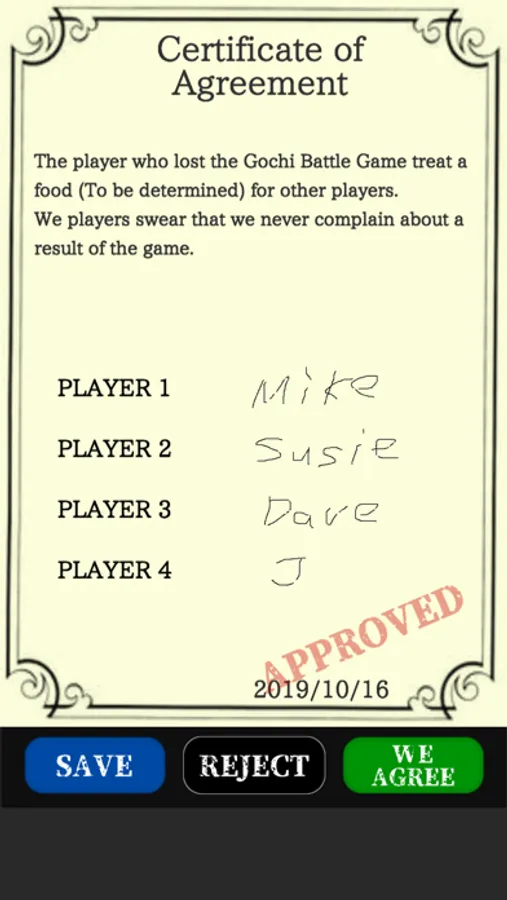 Then, fill out the signatures of all the players and what they will treat before the actual game starts and leave them in writing as a pledge.