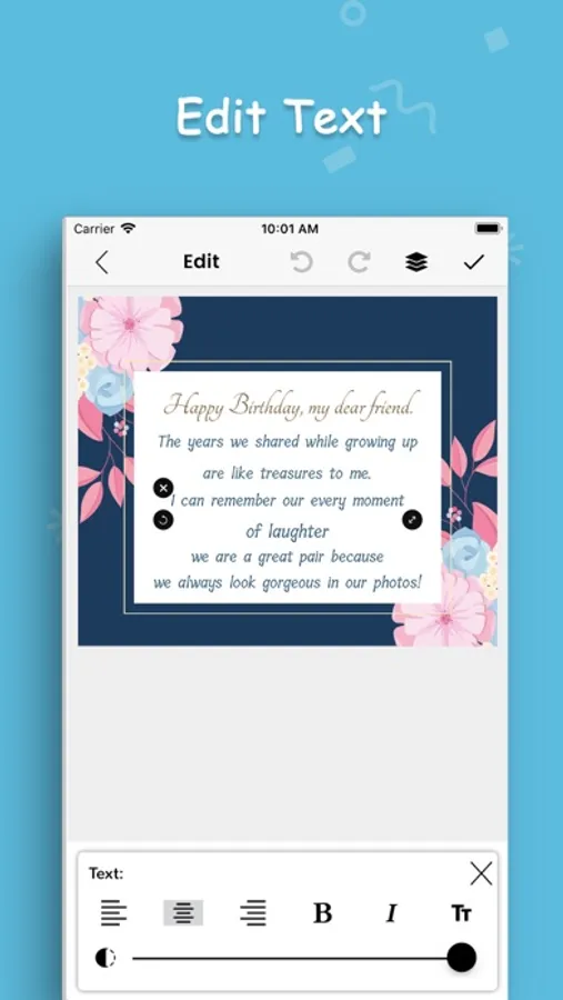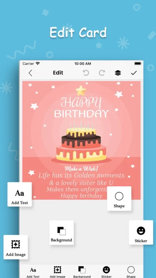 - Select background image of the greeting card whether from the phone library or from the inbuilt background in the app. 20+ backgrounds are available.