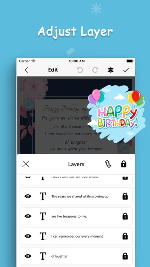 - Employ simplet touch gestures to place the utilities in the birthday greeting card or birthday invitation card effectively.