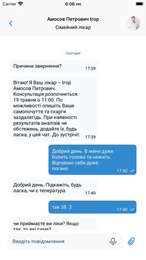 Надайте лікарю результати аналізів, фото або обстеження через додаток одним кліком прикріпивши їх до чату консультації. Якщо виникли питання щодо використання додатку ви можете попередньо проконсультуватися зі службою клієнтської підтримки.