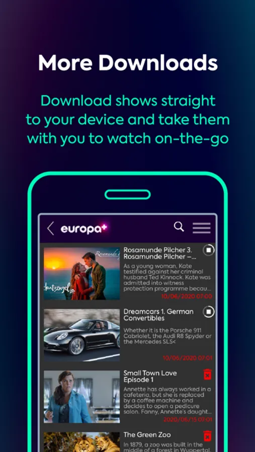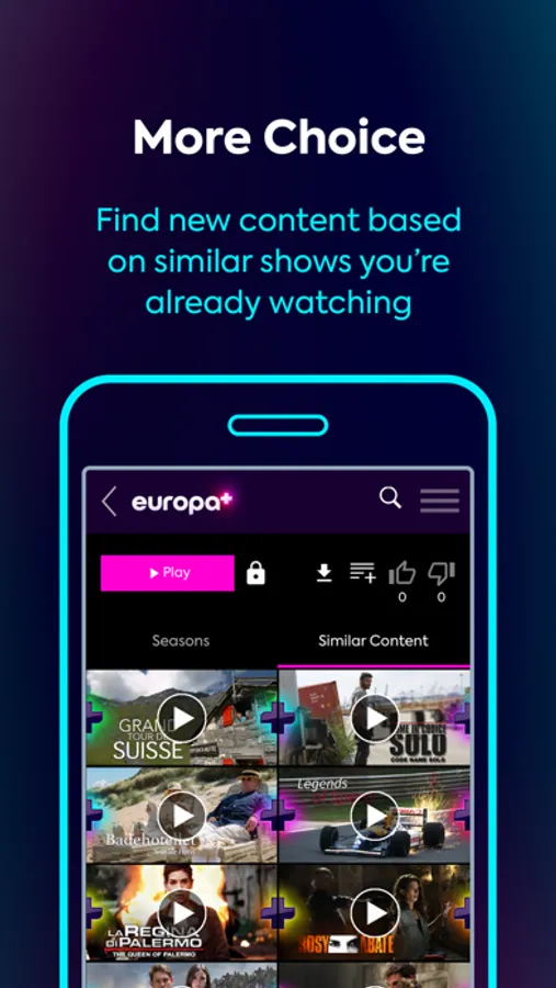 Stream current TV series and shows from across the European Continent. Enjoy the trending series, documentaries, children's shows and much more, all directly from the best producers in Europe, in their original language and with various subtitle options. Plus, with our mobile app and download option, you can access Europa+ anywhere and without an internet connection.