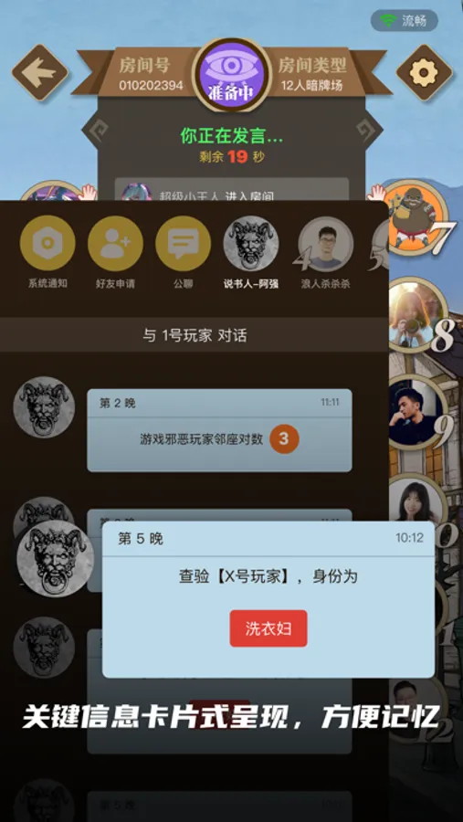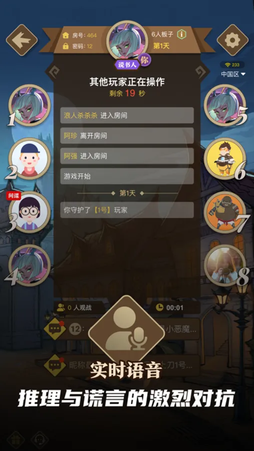 5、狼人杀和血染钟楼,线上玩家和面杀房玩家组局,线上玩家加入面杀房后,线上线下语音同步,无缝连接,如同亲临现场。