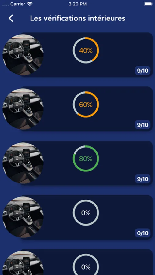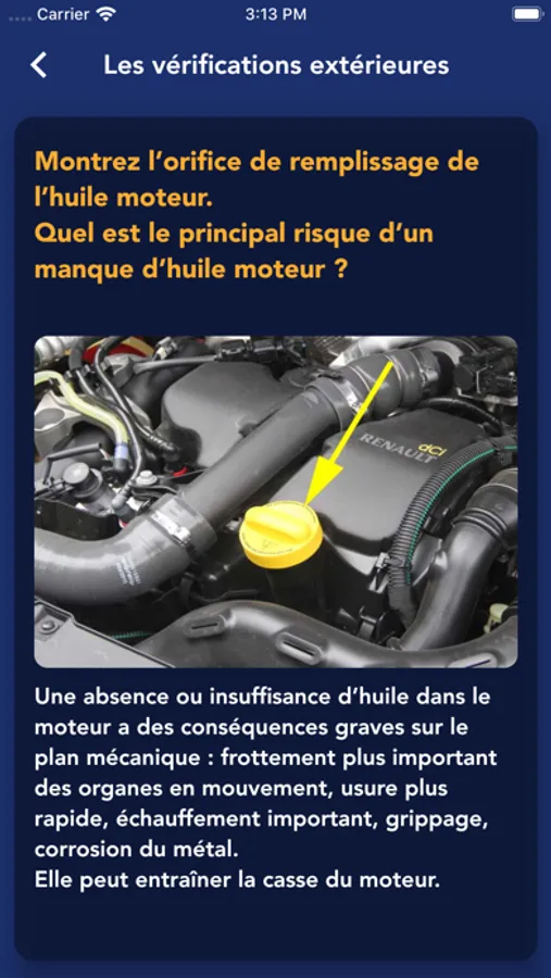 Grâce à l'application Verifs, il est très simple de réviser les vérifications intérieurs et extérieurs ainsi que les gestes de premiers secours.