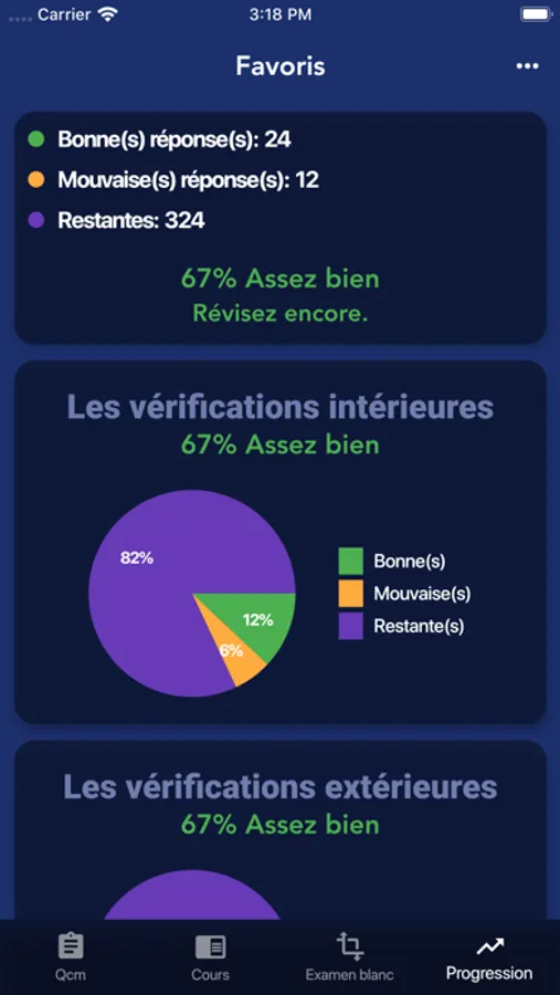 Une large catégorie de questions est associée à chaque cours, vous pouvez suivre votre évolution, et apprendre de vos erreurs.