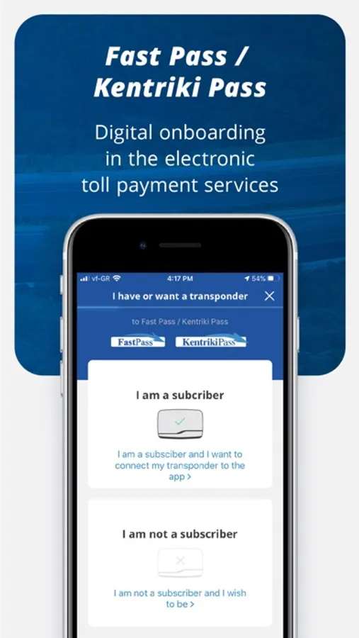Nea Odos and Kentriki Odos motorways put their vast experience into good use by introducing the ultimate travel companion to your smartphone. With MyOdos, all information regarding your route or trip will be easily and quickly available, 24 hours a day, 365 days a year. Through the MyOdos app, you can register in the electronic toll payment services of Fast Pass and Kentriki Pass, and the transponder will be delivered to your home