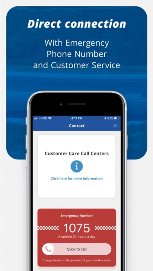 Connect directly with the motorway’s emergency phone number (1075) or with Customer Service.