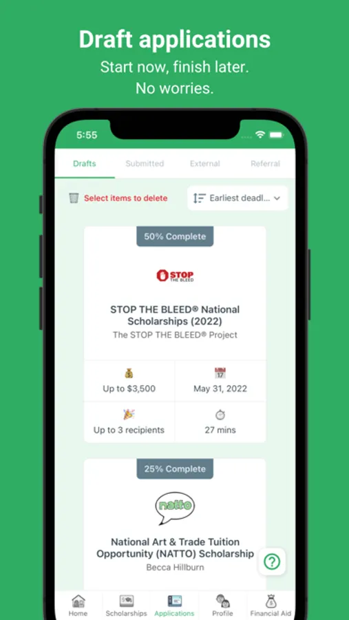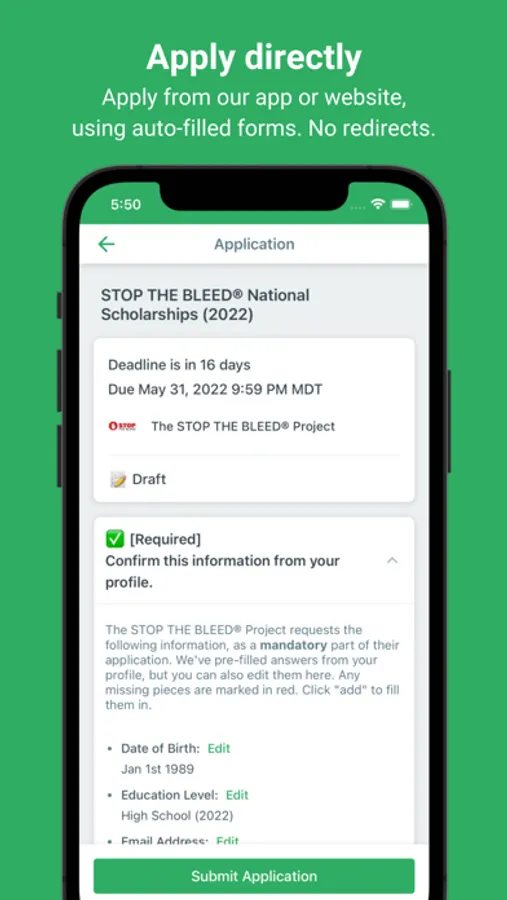 2. Easy, auto-filled scholarship applications