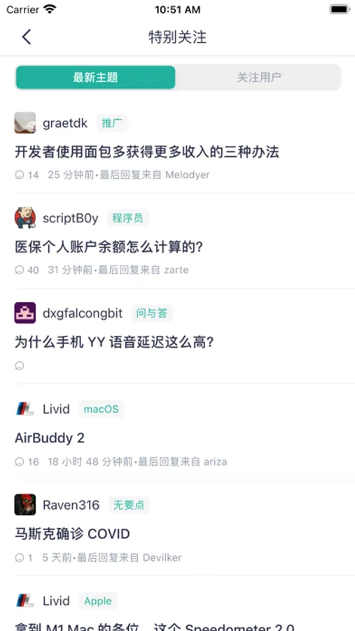 9. 查看特别关注用户,以及特别关注的用户发表的新主题