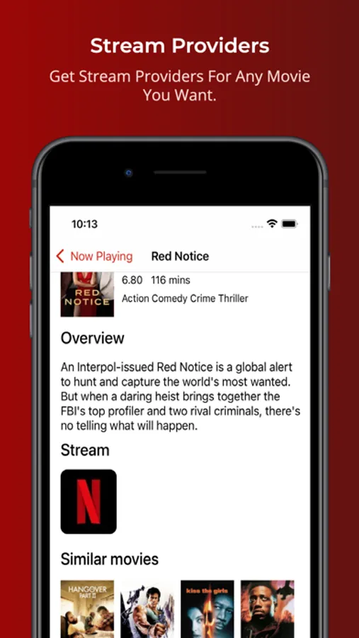 We don't offer streaming or watching movies inside our app, however we give you all needed informations about movies & tv shows