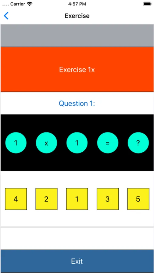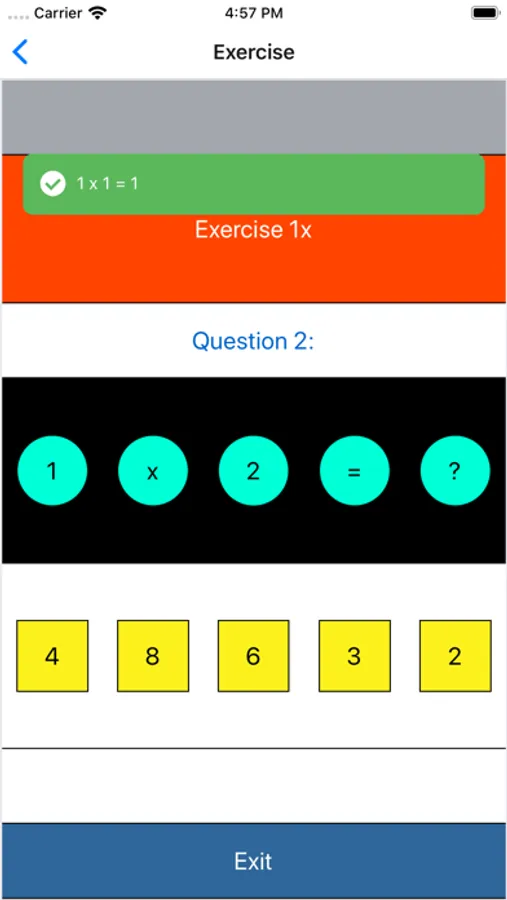 2- Exercise: If you have learned Multiplication Table, then you can make exercises via "Exercises" button of BABA Multiplication Table Game. Questions are asked from simple to difficult, in this section.