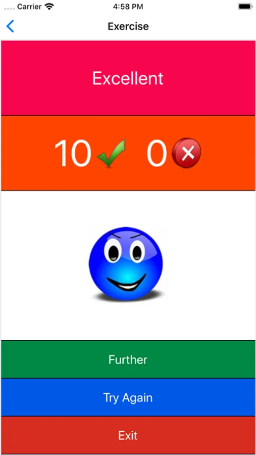 You will see your result after every 10 questions. We hope you enjoy in this great Mathematics game and we expect "Excellent" results from you.