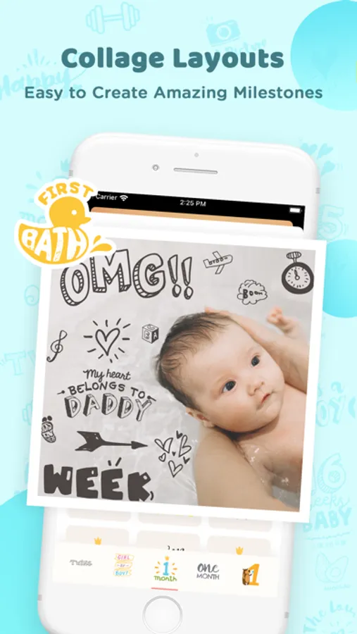 Capture precious milestones with our well-categorized stickers, including birth dates, firsts, holidays, twins etc. Keep track of sweet memories of your baby.