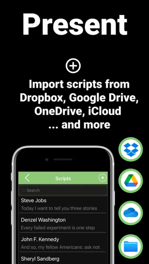 * Import your scripts from Dropbox, Google Drive, iCloud or OneDrive in .doc, .docx, .txt, .rtf or .pdf format.