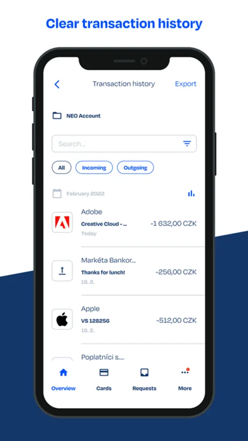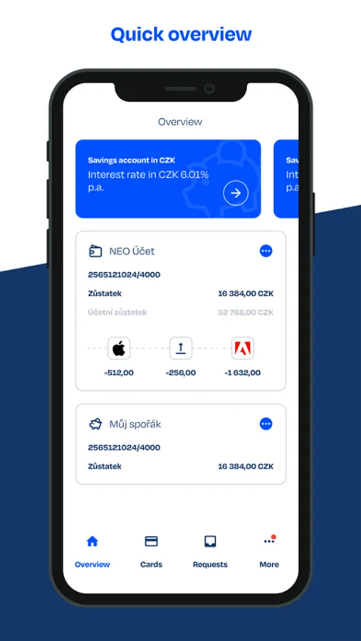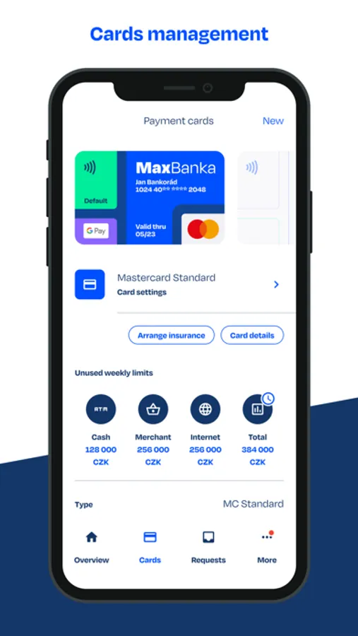 You can set up a new product, sign a document, or arrange travel insurance for your card from the comfort of your mobile phone. Of course, you can view the balances on all your accounts with a complete transaction history and manage your payment cards, including setting individual limits, PIN, ePIN and 3D Secure phone number.