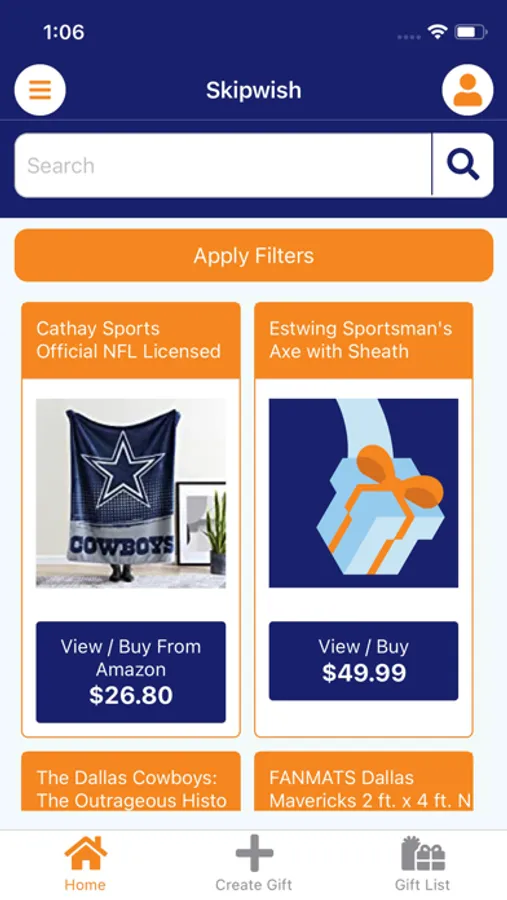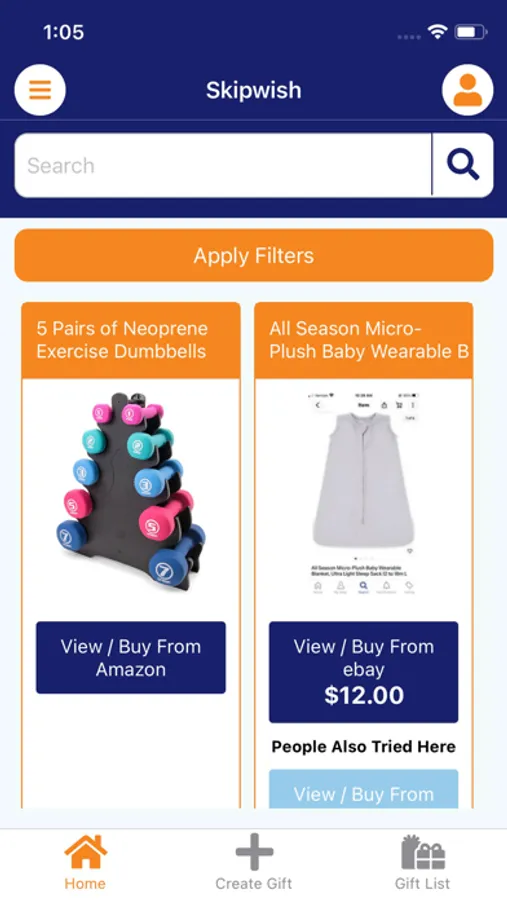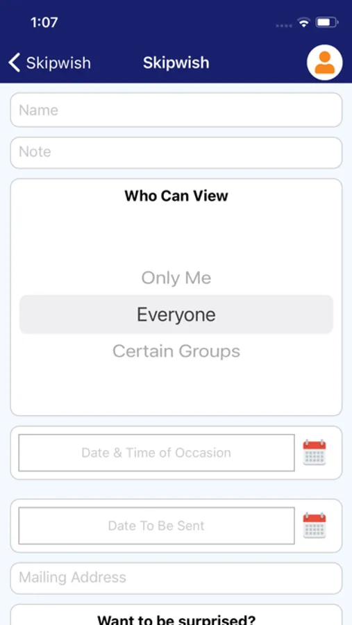 Skipwish is a free registry, for all occasions, available for use at any store. Create gift lists using photos, form fill, link scraping, and Skipwish's ultimate global search across popular websites like Amazon, eBay, and Target. Share your lists with family and friends by email and social media and receive rebates on purchases across the web, even after applied discounts.