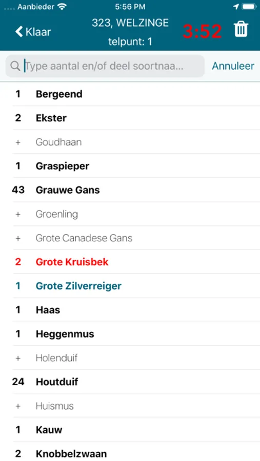 Met deze app kun je tellingen invoeren. Denk hierbij o.a. aan de Sovon-projecten: