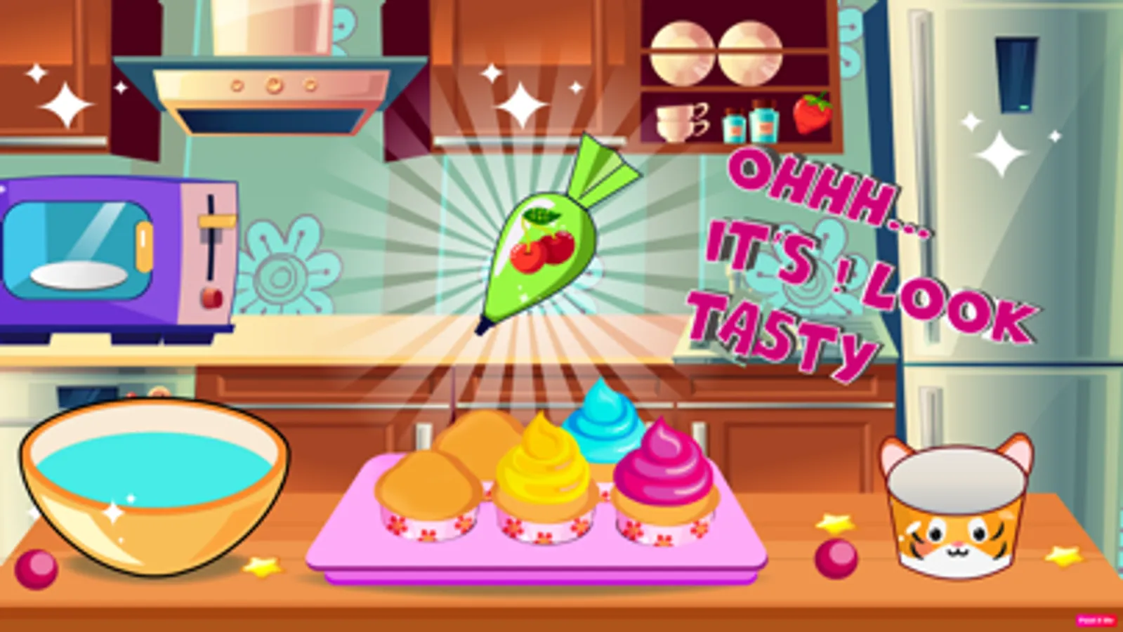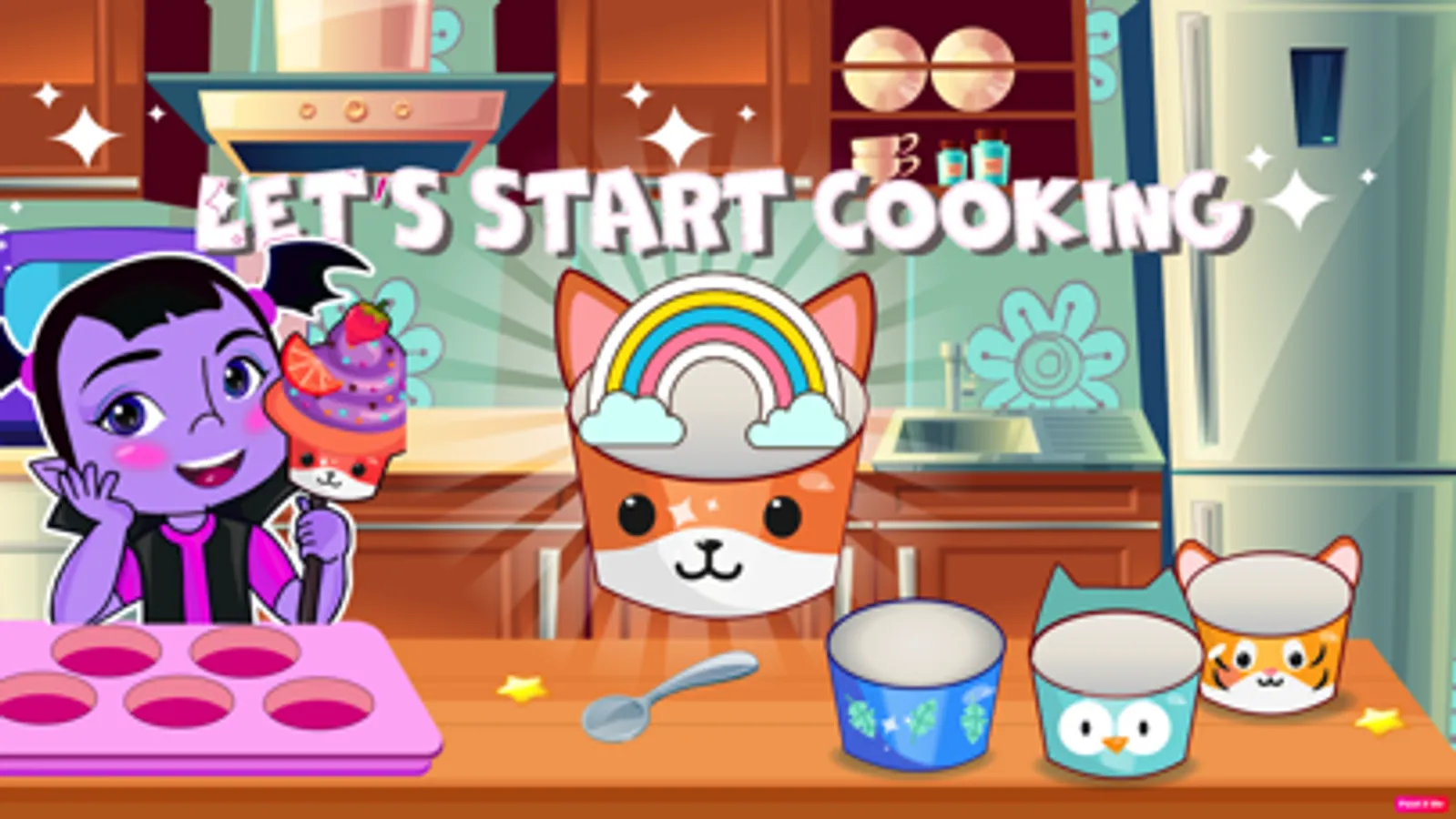 Choose your favorite color of food dyes and made cream. Go to the baking stage, wait and press the oven button! In the last level, the vampire has a collection of decorations and stickers, fruits, sequins, toys and more! decoration berries. Cooking cupcake, decorate and eat it! Little monster will wait you in the magic kitchen!