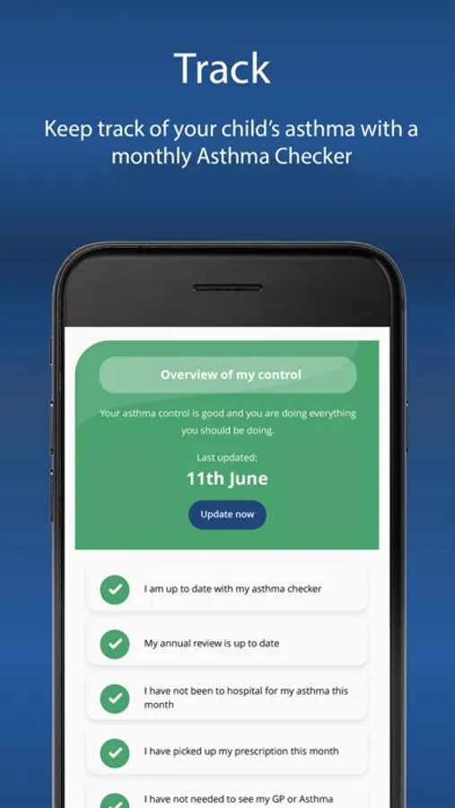 - A monthly Asthma Checker to monitor your child's asthma control in between annual reviews.