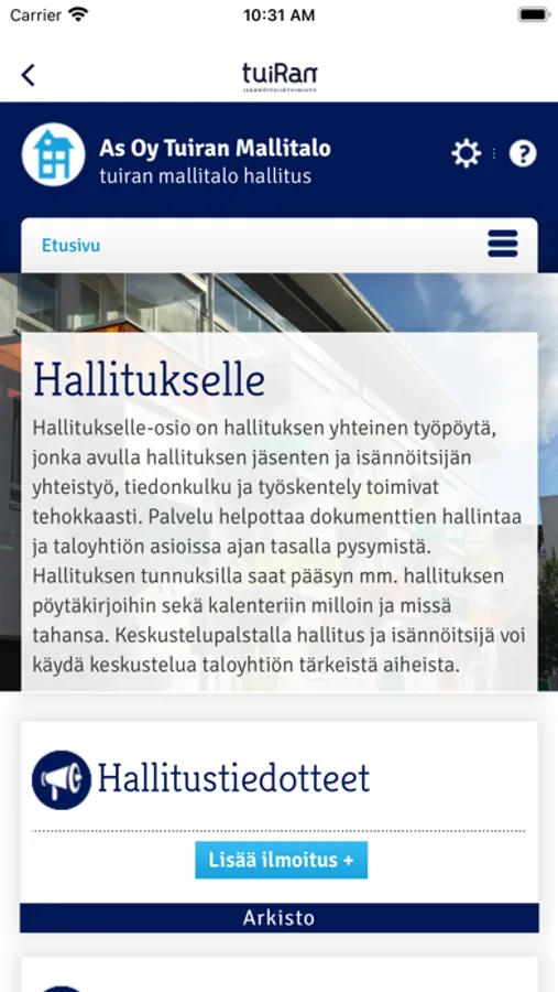 Tuiran Isännöitsijätoimisto Oy parantaa asumisviihtyvyyttäsi tuomalla kaiken asumiseen liittyvän informaation sähköiseen asiointikanavaan. Sinun hyvinvointi ja asumisviihtyvyys on myös meidän asiamme!