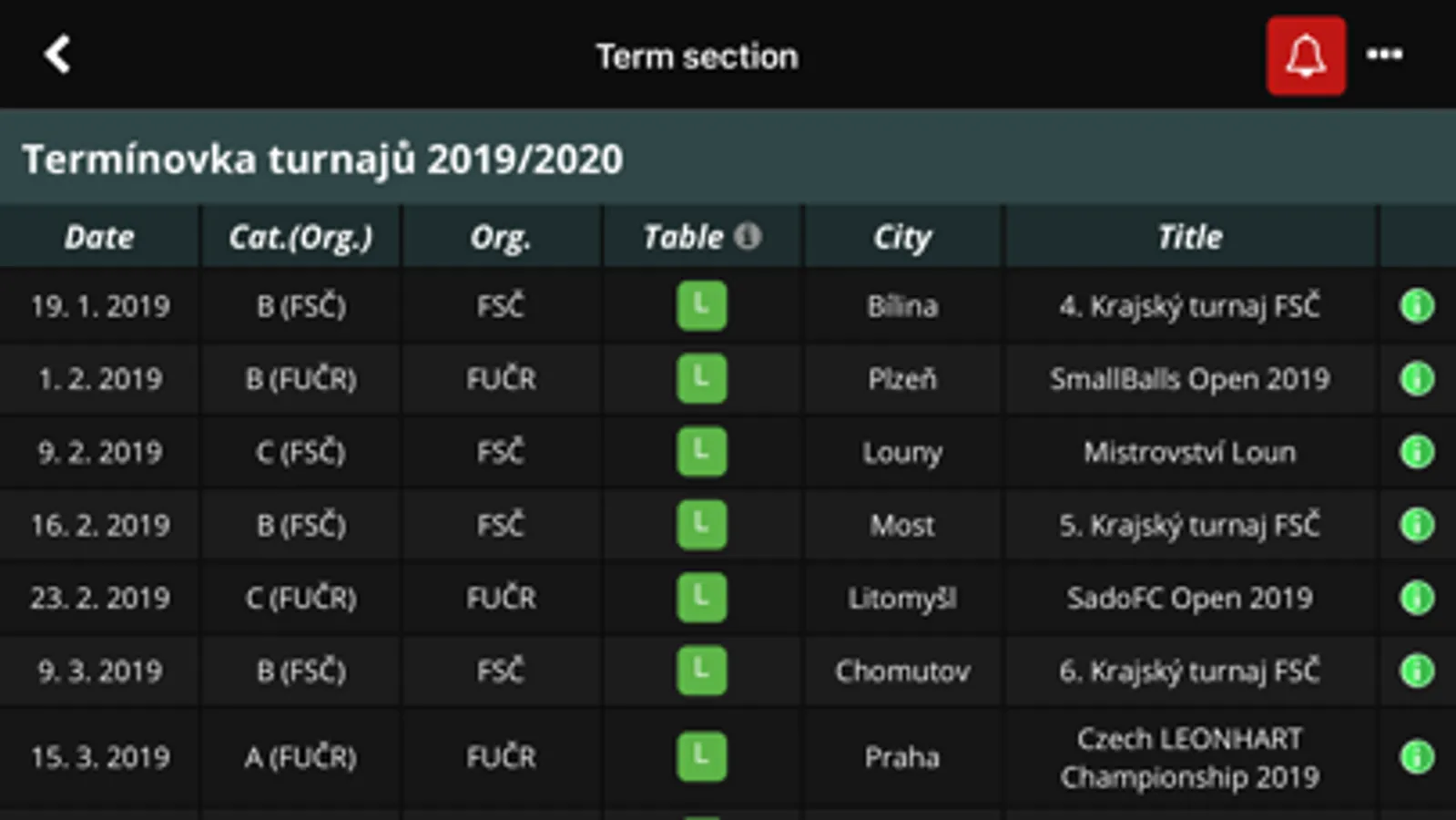 Aplikace TOSY Manager ti umožní sledovat detailní informace o turnajích. Po vybrání turnaje v termínovce můžeš sledovat informace o daném turnaji a jeho jednotlivých disciplínách. Například herní systém disciplíny, registrované hráče, výsledky, pavouka atd.
