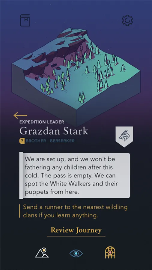 Guide the decisions of Lord Commanders through the seasons and mount expeditions beyond the Wall. As ravens travel to and from your expeditions in real time, their messages are delivered to you throughout your day. Respond with your command right away, or whenever you see fit.