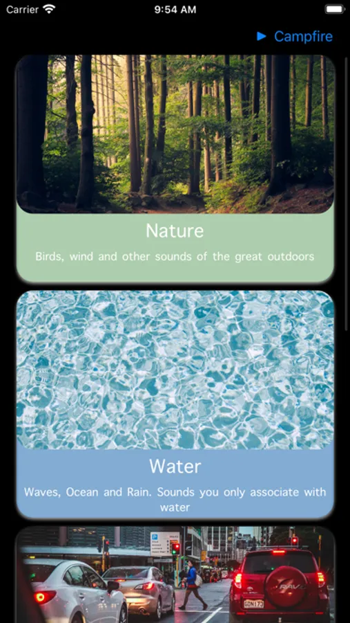 This app is great with headphones when your in a noisy environment and you want to enjoy some calm and its great for falling asleep to.