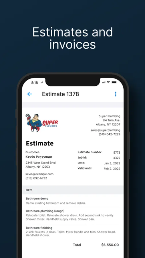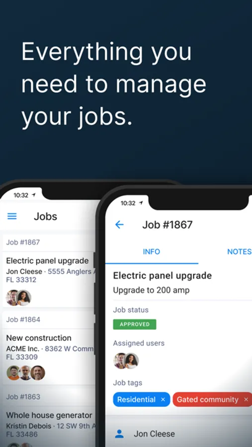 Manage your schedule, create estimates or invoices, keep track of to do lists, write job notes, take photos, and a lot more.