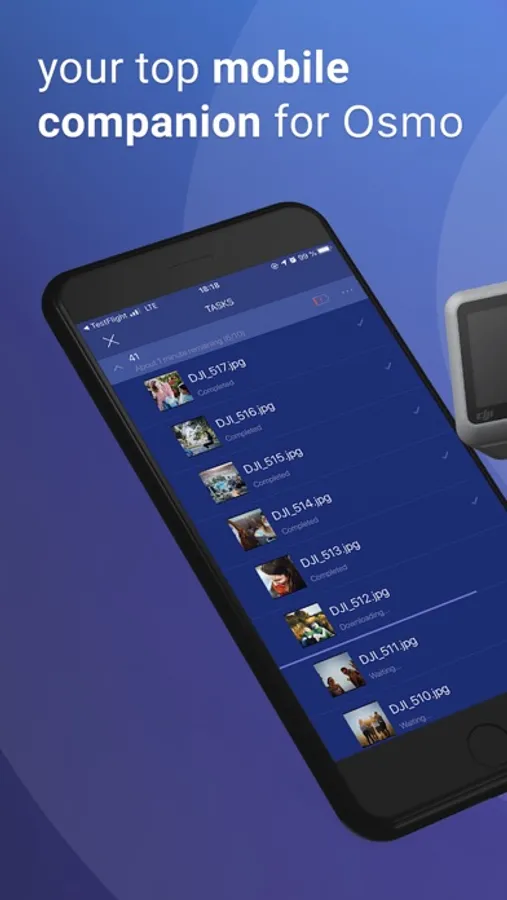 The app support background work. Use other apps while Sync for Osmo downloads media for you (unlike DJI Mimo);