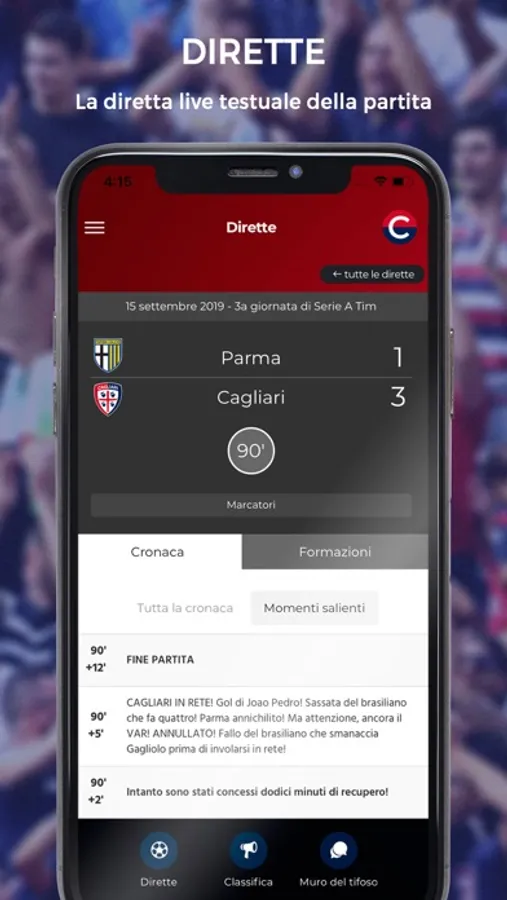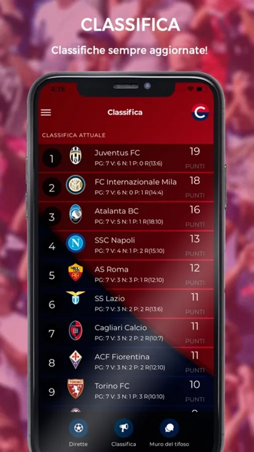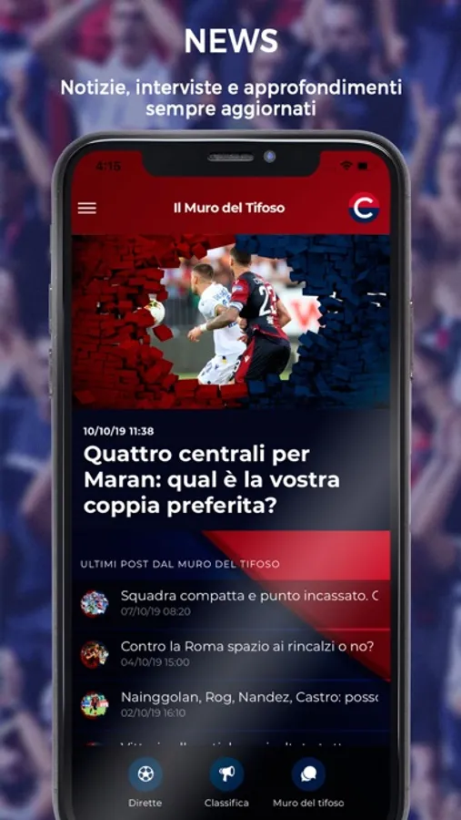 Gli appassionati del Cagliari Calcio avranno accesso al mondo del loro Club con notizie sempre aggiornate, dirette testuali LIVE delle partite, classifiche, rubriche per i Tifosi e notifiche in tempo reale.