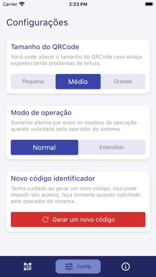 Exibe um QRCode usado para liberar acesso às barreias físicas controladas pelo SisControl.