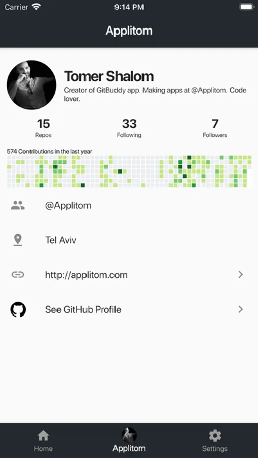 With GitBuddy you can follow developers on GitHub and see their latest activities and contributions graph in one feed.