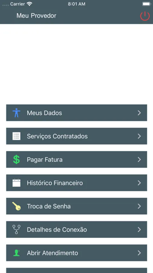 Verifique sua fatura em aberto, visualize o histórico de pagamentos, abra chamadas de serviço, obtenha documentos fiscais, veja detalhes sobre seu serviço, chamados de atendimento abertos e fechados, ordens de serviço abertas e fechadas.