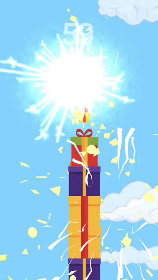 If a star is on the way, catch it and the tower of gifts will immediately become higher!