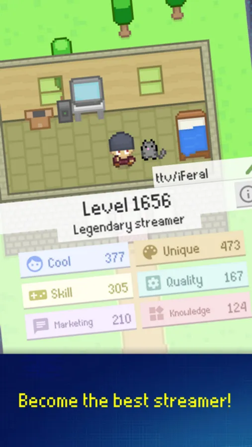 Start playing now and experience the popularity of a famous streamer! Start your dream career, customize your character and streaming setup, master different games, make your stream twitch with mixed content every day, earn money with sponsors and merchandise, take part in different events, buy better PC setup and even pets, compete in the leaderboards and unlock achievements. It's time to rise to the top of streamers in this premium, unique and free streamer simulator game!