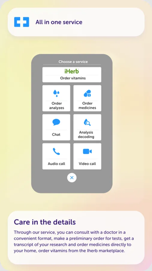 Step 3: consultation with your doctor by video, audio, or chat, based on the results of the laboratory tests and prescription (doctors do not prescribe prescription medicines);