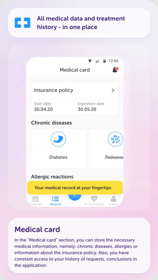 - store all medical history, chronic diseases and allergies in your personal Medical card.