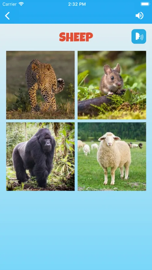 ** Dog voice, lion voice, cat, tiger, donkey voice and other 36 animal sounds and pictures in total waiting for you to learn. Fun games in practice, which is very attractive with high quality photos. Log into the animal kingdom and start to recognize them.