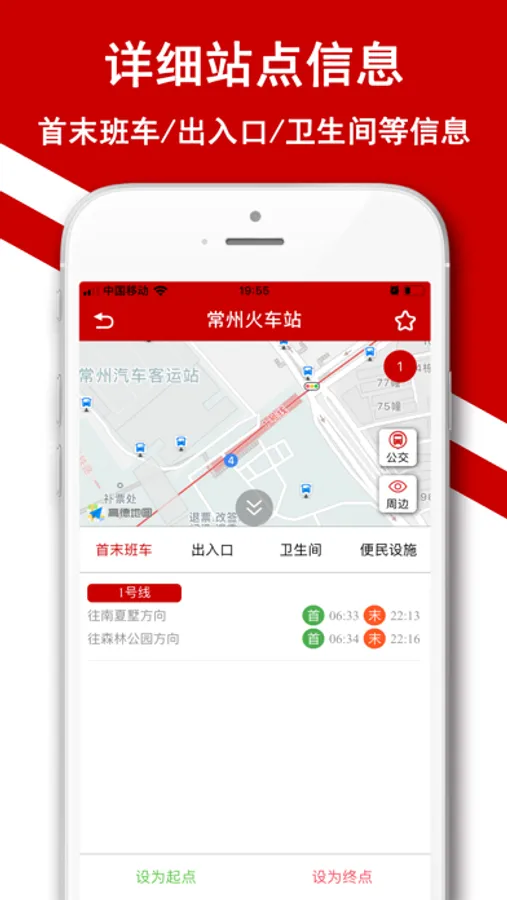 详细站点信息:站点首末班车时间、站点地图、出入口、设备设施等信息。