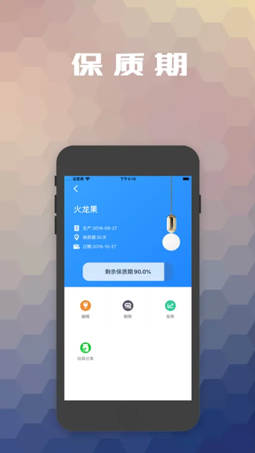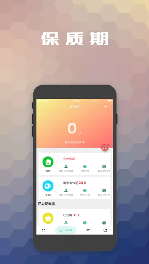 2、有效期提醒:可以根据商品生产日期和有效期自动计算倒计时,清晰的展示物品有效期、商品保质期。可设置提前提醒,防止因为不经意间的遗忘导致商品过期浪费。