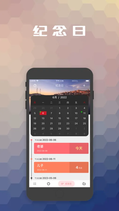 3、纪念日记录:可以根据中国农历计算,也可以单独设置最关心的人