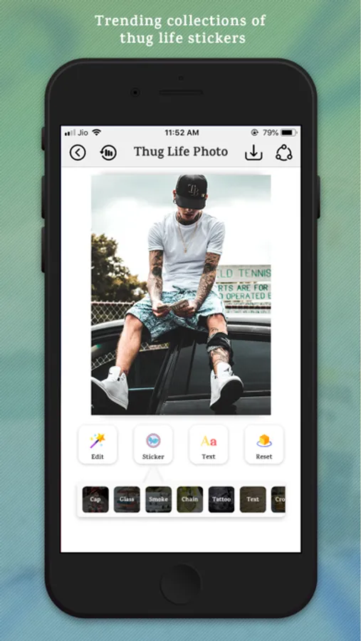 This app contain different type of multiple thug life sticker like cap, glass, smoke, chain, tattoo, text, crown, money and mask.