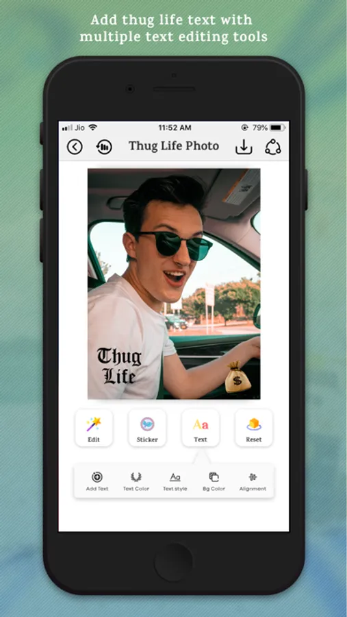 - Apply thug life sticker and text on selected photo