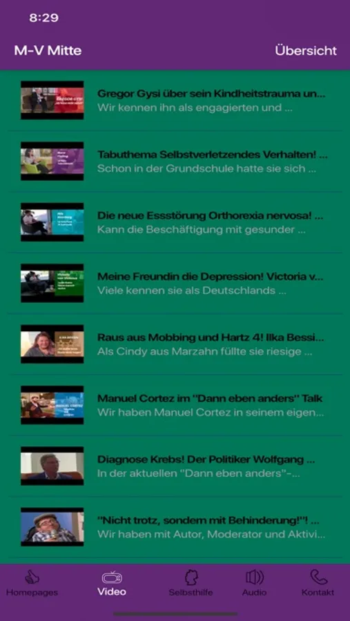 Eine App als Hilfe zur Selbsthilfe und zur Schaffung von Synergien für Mecklenburg-Vorpommern Mitte. Die App berichtet in Wort, Video und Audio von den Selbsthilfegruppen in Güstrow und Rostock und ist Teil der kompletten Normierung von Selbsthilfe-Apps im Land Mecklenburg-Vorpommern.