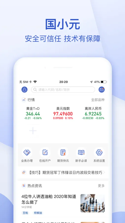国小元app是国元期货旗下的一款专业手机交易软件,这款app集在线开户、期货交易、专业资讯、业务办理等为一体。
