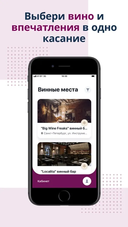 • Выберете винное место, которое подходит под ваши ожидания или удобно расположено.