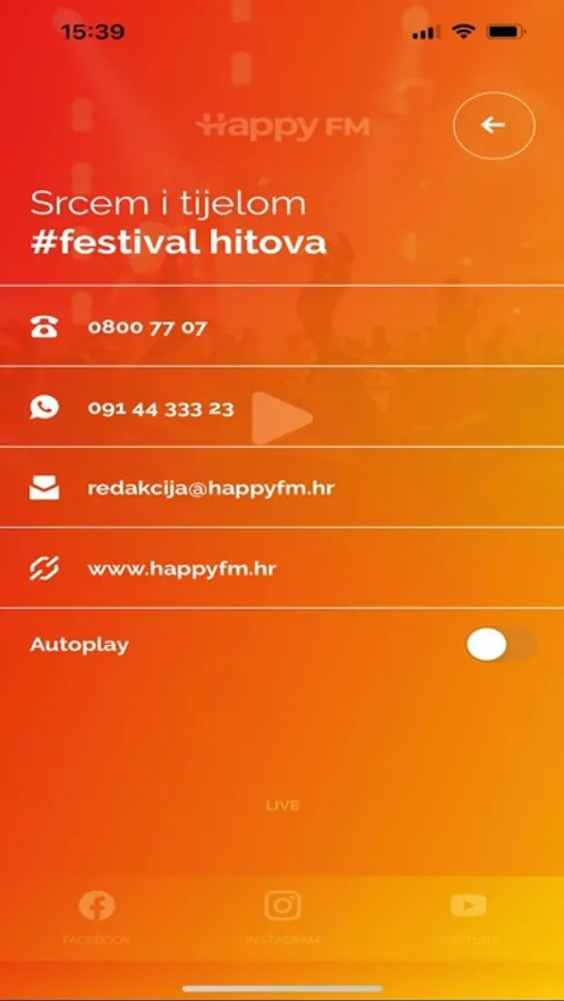 Besplatna aplikacija najzabavnijeg radija u Hrvatskoj, Happy FM-a koji svira isključivo hrvatsku zabavnu glazbu!