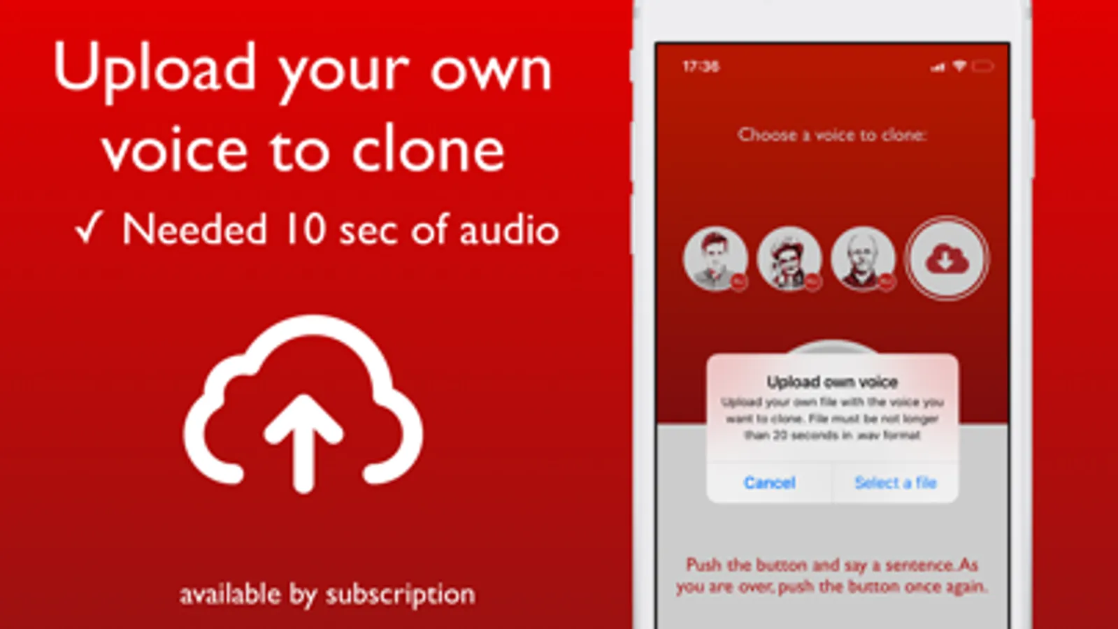 Voxclone is a unique app that allows users to clone any voices. You can change your voice into anyone's from our list. Also, if you get tired of usual voice selection, you can