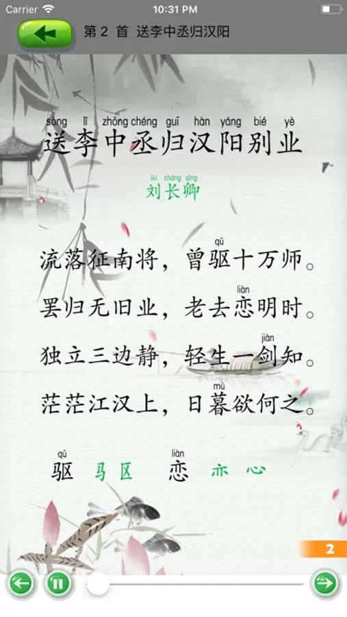 第2首送李中丞归汉阳别业(刘长卿);